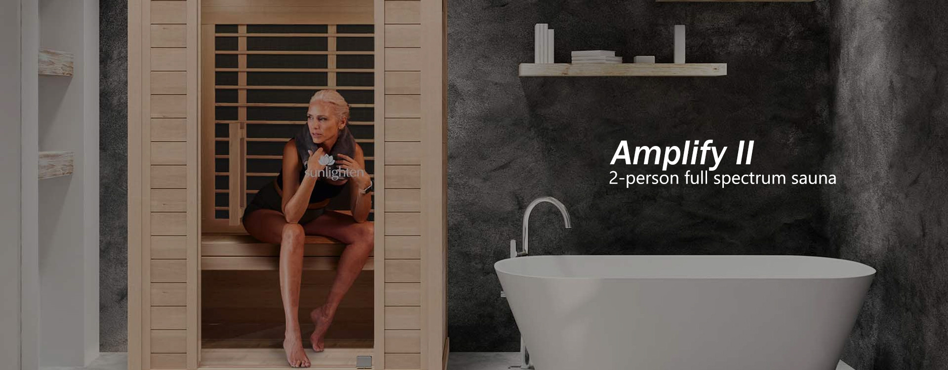 The Amplify II delivers what its name promises because of the unique full spectrum heater mix. Two heater types work together. Sunlighten’s patented SoloCarbon far infrared heaters send the high quality and high quantity infrared wavelengths for maximum cellular absorption, halogen heaters add even more heat, all with Sunlighten’s proprietary design that produces virtually no EMFs.
